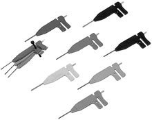 Attached to the tips of logic probe (701988 or 701989) or mini-clips (B9852CR), the IC clips can be used to clip contiguous 0.5-mm pitch terminals. A total of 10 clips are included.